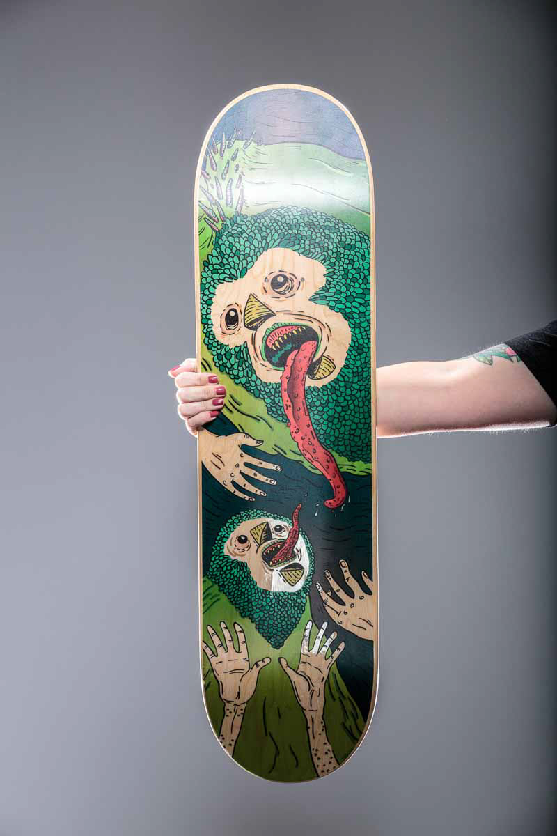 Adobe MAX Russel Brown Sci-Fi Creature Spectacular creature creation. Illustrated, designed, and printed on skate deck, compliments of Santa Cruz Skateboards, and t-shirt, compliments of Epson.